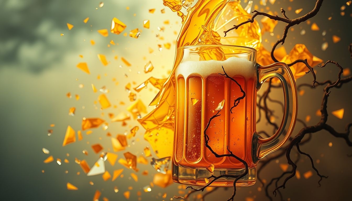 Het zien van een gebroken bierpul benadrukt vaak het verlies van vreugde, gezelligheid en de capaciteit om van het leven te genieten.