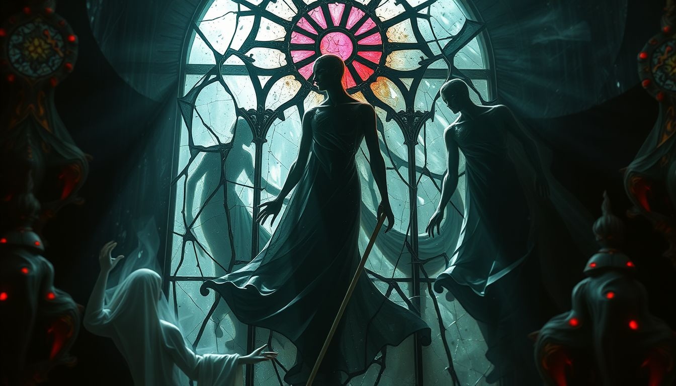 Het vernielen van religieuze symbolen in dromen weerspiegelt innerlijke strijd tussen geloof en twijfel, doordrenkt met mystieke spanning.