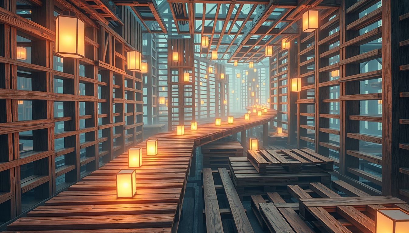 - Pallets die een pad vormen door een dicht bos: Navigeren door een onzekere periode, waarbij je je bases moet blijven controleren.