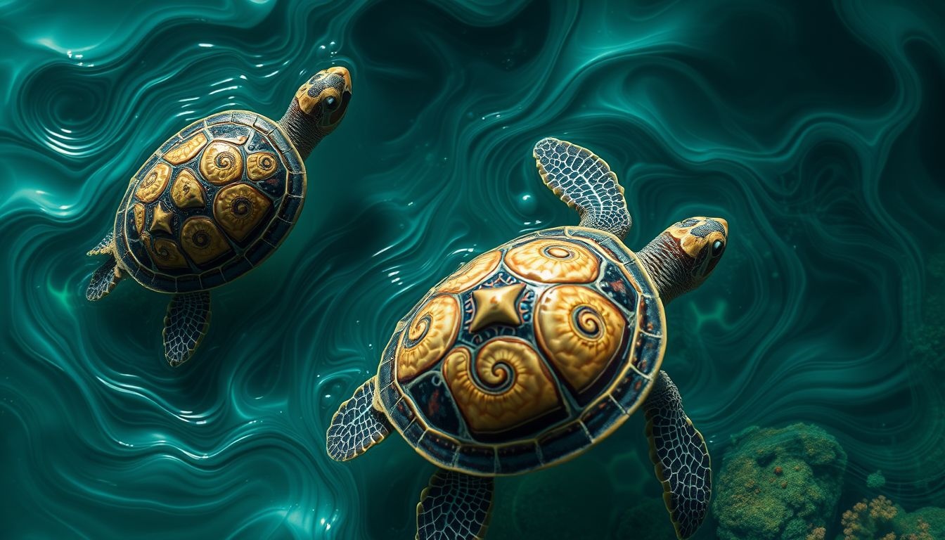 - Een schildpad die in het water zwemt: Dit kan staan voor je emotionele toestand. Het water symboliseert emoties en de schildpad die erin zwemt, vertegenwoordigt hoe je omgaat met je gevoelens. Een rustig zwemmende schildpad kan duiden op emotioneel evenwicht, terwijl een worstelende schildpad kan wijzen op emotionele turbulentie.