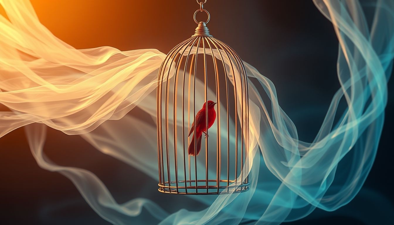 De stilte van de vogel in de kooi symboliseert vaak een verloren stem, een onuitgesproken mening, of een droom die je hebt opgeborgen.