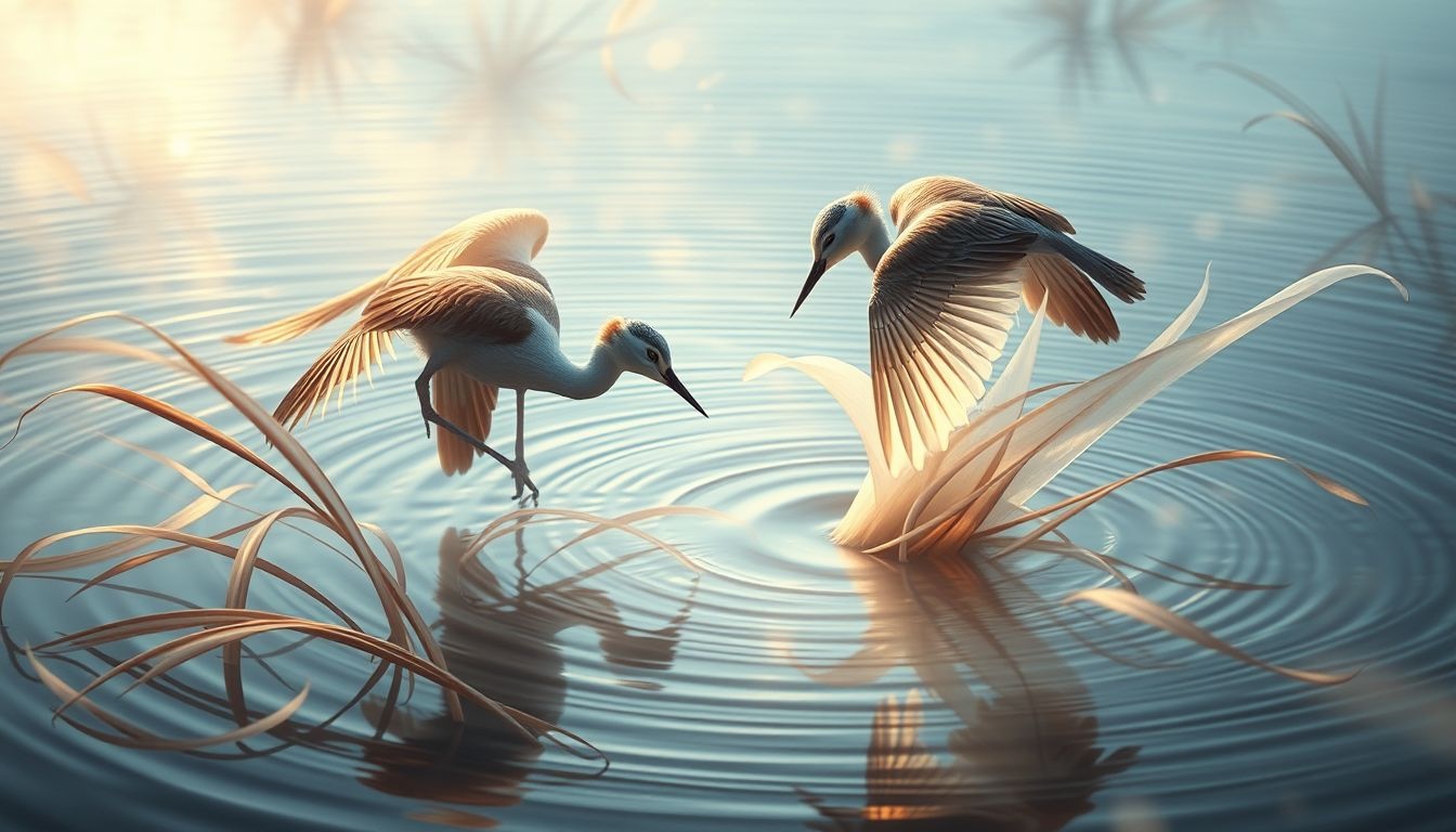• Een groep watersnippen die samen zingt: Dit kan duiden op harmonie en vreugde in je sociale interacties en een gevoel van verbondenheid.